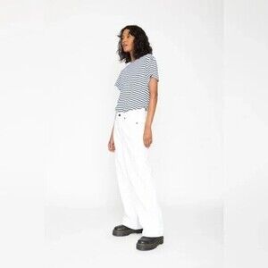 Free People x Sandrine Rose Women Dust White Wide Curve Leg Jeans 30
