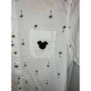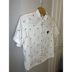 Disney Junk Food Button Up Shirt Men's XL Mickey Mouse Hawaiian Palm Trees White