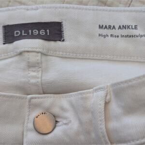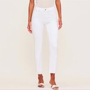 DL1961 Mara Straight High Rise Instasculpt White Jeans Raw Hem, Sz 27x27