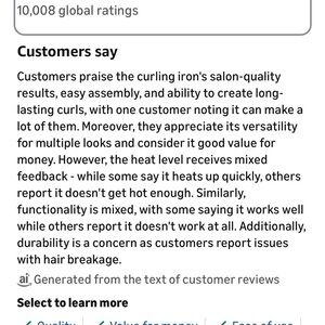 Achieve salon-quality results with this versatile hair styling tool set. Featuring a sleek black and rose gold design, this set includes multiple attachments for all your styling needs. Perfect for creating curls, waves, and volume with ease. Comes with heat protecting glove, unused, two black hair clip to keep your hair out of your face while styling and a 4 pack of volumizing hair clips to use in your hair for even more volume. I only used the brush less than 5 times, smallest curling barrel like twice; my hair is just too fine to hold a curl