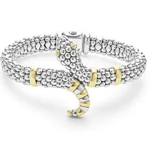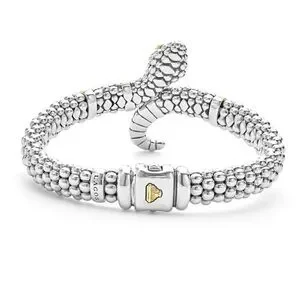 Sterling silver Caviar beading highlighted by 18k gold form this unique snake bracelet.