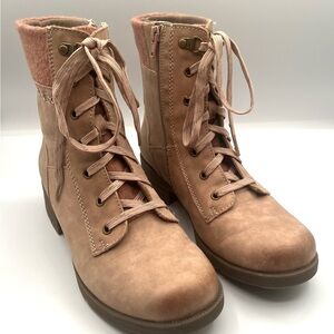 Earth Origins Pink/Tan Lace-Up Ankle Boots - Size 9.5