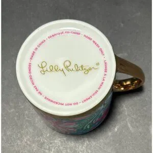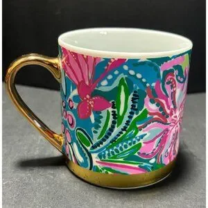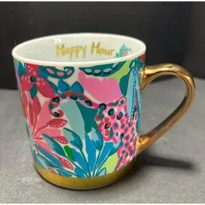 Lilly Pulitzer Happy Hour Ceramic Mug Tone Gold Tone Handle Colorful Floral