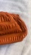 Gaza Gold Chain Orange Textured Shoulder Bag. Medium size. Small imperfection on the opening (see photo). Large interior compartment with one small zippered pocket. Interior is like new.