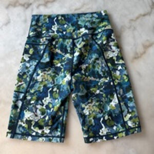 Sweaty Betty Super Sculpt 8" Sustainable Cycling Shorts Sz S Green Blue Printed