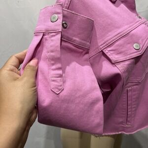 Wrangler Pink Cropped Oversized Denim Jacket Frayed Hem Western Snap Front SZ M