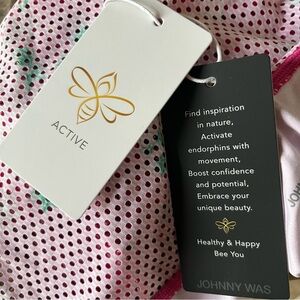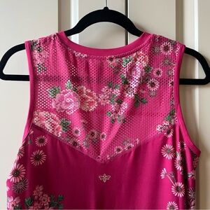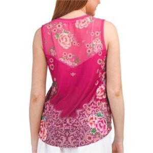 NWT Johnny Was Bee Active High Low Mesh Contrast Tank Top Pink Lace Floral sz S