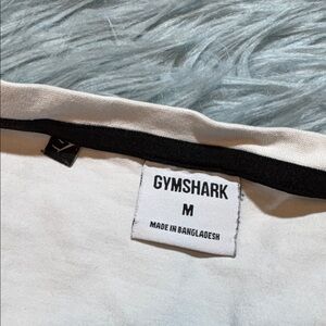 Cream sleeveless top with bold Gymshark logo. Comfortable and stylish.