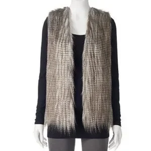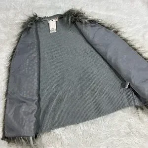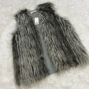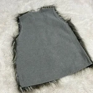 Pink Republic Gray Faux Feathered Fur Knit Woman’s Vest NWT size Large