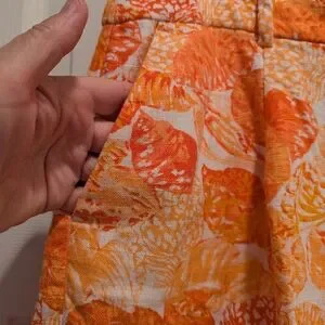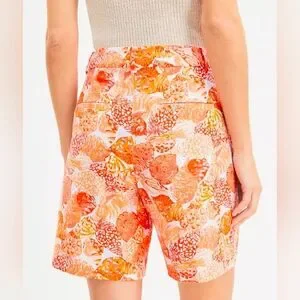 Loft linen blend Peyton Bermuda shorts white orange coral seashell tropical print coastal travel vacation cruise
