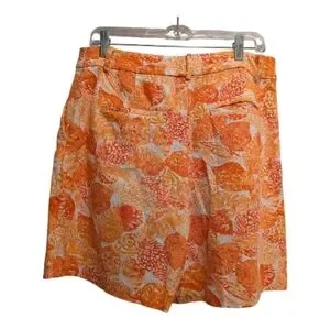 LOFT The Peyton Bermuda Shorts Linen Blend Baked Gold White Orange Size 8 NWOT