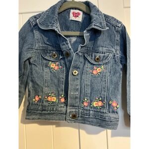 Little Lass Girls Denim Jacket Embroidered Flowers Blue Size 3T
