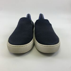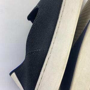 Rothys The Original Slip On Sneaker Black Soild Fabric Blue White Strip Womens 9.