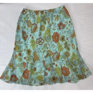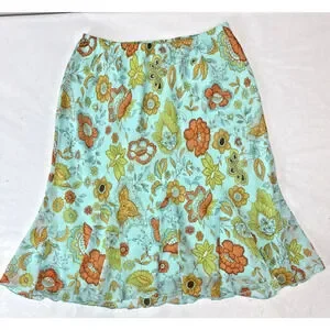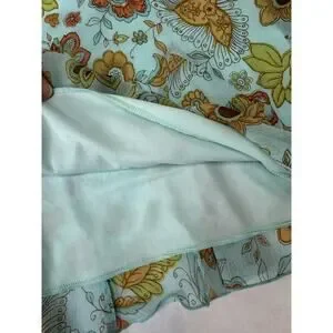 Vintage Y2K Skirt Lined Floral Aqua 70s-inspired A-Line Flowy Lightweight Large