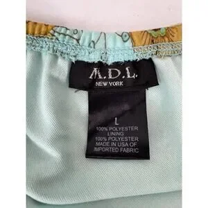 This Vintage Y2K skirt by MDL New York is a lovely aqua floral chiffon fairy skirt that is perfect for those who love the 70s-inspired A-Line style. The skirt is lined for added comfort and is made of lightweight polyester, making it perfect for warm weather. The knee-length skirt features a glitter accent, adding a touch of sparkle to the flowy design. The size is large, making it a versatile piece for women who wear a regular size. Ideal for a casual or dressed-up look, this skirt is sure to become a staple in any woman's wardrobe.