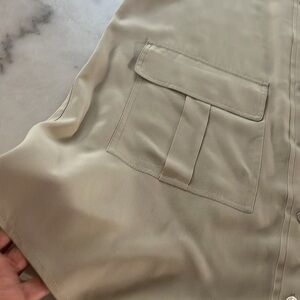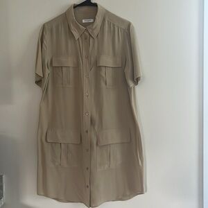 Equipment Remy Silk Button-Front Utility Shirt Dress Khaki Beige M