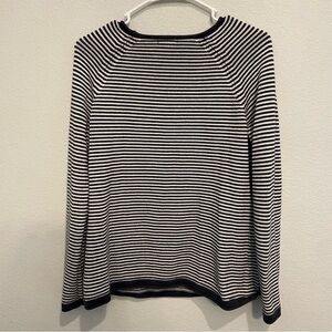 Eddie Bauer Navy Blue and White Striped Knit Oversized Coastal Sweater Medium