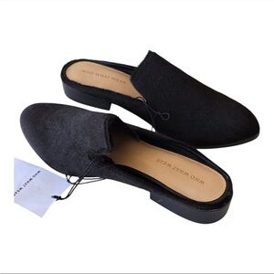 New Who What Wear Faux Fur Mules Flats Black Size 6.5 7.5 8.5 Comfort Slides