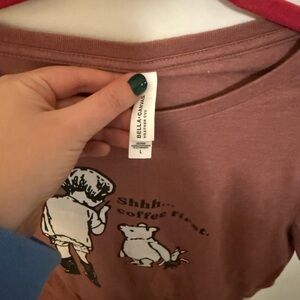 Snorg Tees Size Large Casual short sleeve tee. Worn once for company photoshoot. Features playful classic Winnie the pooh graphic “shhh… coffee first” Soft and comfortable fabric Heather mauve t shirt.