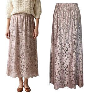 NWT Gold Hawk Flora Lace Midi Skirt Sz L Beige Side Slit Romantic Fairy 90s Y2K