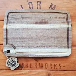 Premium Acacia Wood — durable, naturally antibacterial, and stunning grain patterns.
