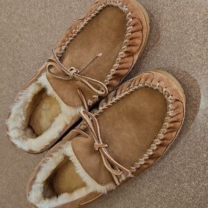 L. L. Bean Men's Brown Suede Slippers!!!Cozy suede slippers with real Australian Lamb's fur plush lining.