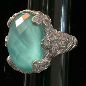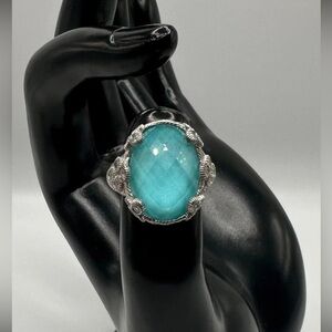 Judith Ripka Sterling Oval Turquoise and Quartz Doublet Cocktail Ring 5.75