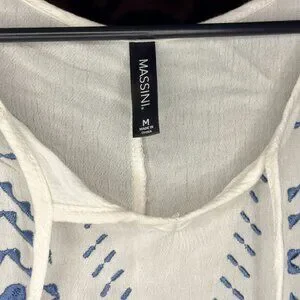 White & Blue Embroidered Flowy Long-Sleeve