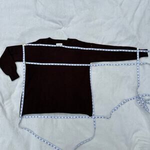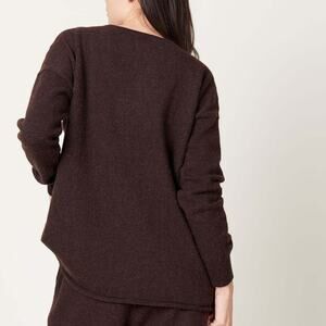 The Base Crewneck Sweater from Lauren Manoogian is a long sleeve crew with a relaxed fit in a deep espresso brown with a subtle light raw white wool heather, called "Soil". This top features a ribbed knit neckline, ribbed knit banding at the sleeves, a relaxed fit and a rolled bottom hem. Designer size 3; which is a Large per her size chart. Measurements in pic. 65% Baby Alpaca, 28% Merino Wool 7% Lycra. Dry clean or hand wash. Made in Peru. Brand new with tags; in perfect condition. I have other coordinating pieces in Soil available (like the pants). Please note: the Made in Peru tag has one stitch loose. See pic.