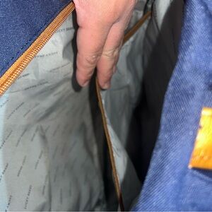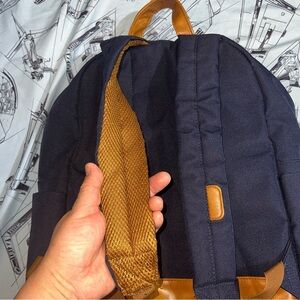 Stylish backpack by Lucky Brand. Features navy fabric with tan accents. Perfect for everyday use.