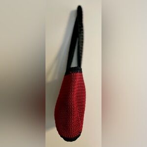EUC This stylish crochet tote bag features a striking red and black design, perfect for any occasion. Its unique texture and bold colors make it a standout accessory.