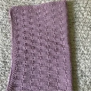 New hand knit , pink , soft baby girl blanket .