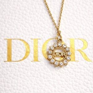 Chic Dior necklace with a gold chain and crystal-adorned pendant. Adds sophistication to any look.