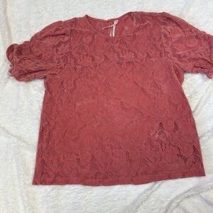 Anthropologie Pink Ruched Blouse with Mandarin Collar