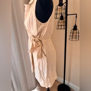 Chic and timeless Anthropologie linen sleeveless trench dress in a gorgeous cream shade. Features a classic adjustable waist tie for a flattering fit, and a polished trench-inspired silhouette. Lightweight, breathable linen makes it perfect for warm weather, vacations, or elevated everyday wear.