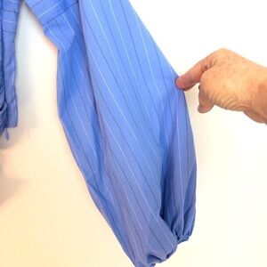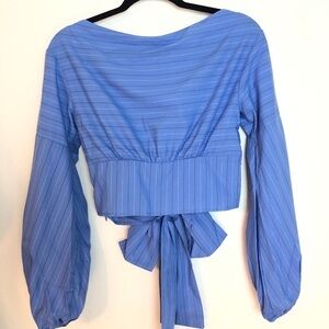 NWT LIKELY FRONT TIE TOP M Blue long sleeve striped top cropped cotton shirt