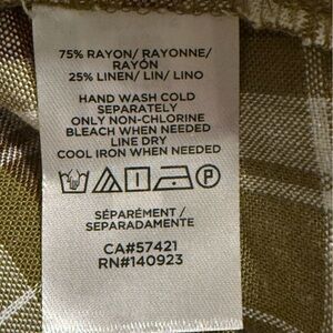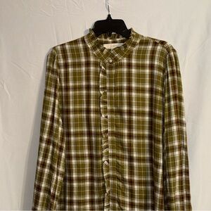 NWT LOFT Olive Plaid Long Sleeve Ruffled Blouse Size Large