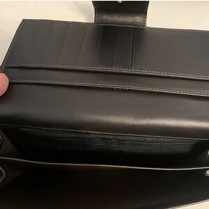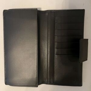 Authentic Extremely Rare Gucci Vintage Sherry Web Bi-Fold Long Wallet. Stylish & instantly displays Gucci elegance & class. Versatile, classic piece with silky-smooth blackish, deep chocolate-brown calfskin leather, neutral tan canvas & iconic red & green WEB "saddle strap“ nod. Like-new, with no visible signs of usage.