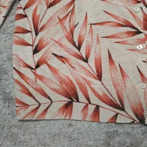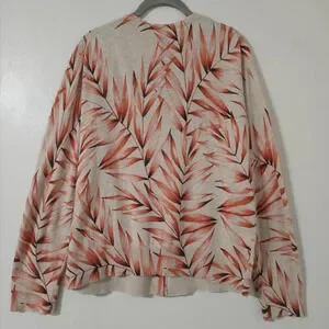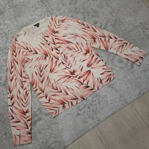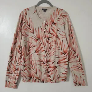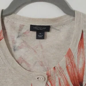 ANN TAYLOR Factory Leaf Print Button Front Cardigan, 100 Cotton, XL