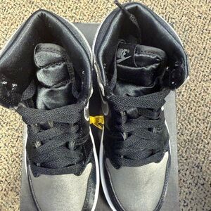 Jordan 1 Retro High OG Satin Shadow- Kids Sneakers Black and Silver