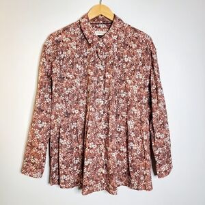 Anthropologie Pilcro Sasha Smocked boyfriend button down blouse Size Medium