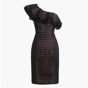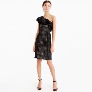 NEW J Crew Black One-shoulder Eyelet Mini Dress Size 2