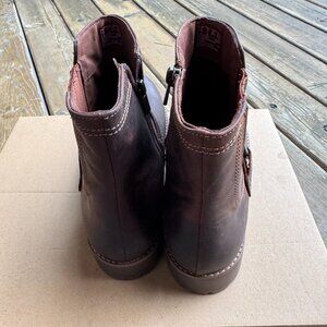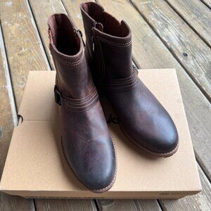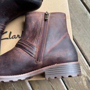 NIB Clarks Aspra Side Zip Buckle Boot in British Tan Leather - Women's 11