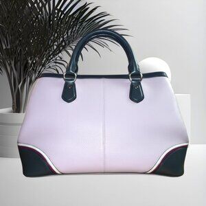 Experience classic sophistication with this stunning Coach F1082–F15145 Colorblock Pebbled Leather Satchel. This model features a striking combination of lilac, plum, and navy, accented with cream piping and Coach’s signature frame-style top clasp. It blends elegance with modern design for a truly elevated look. The structured silhouette and kiss-lock style top add a timeless luxury feel, while the high-quality pebbled leather offers durability and polish. A perfect Statement Piece for workdays, evenings out, and elevated everyday style. For Coach collectors or fans of unique discontinued pieces — this Coach F1082–F15145 colorblock satchel is a standout from the brand’s early 2010s era, known for its bold colorwork and high-quality pebbled leather. Pieces from this line were produced in limited runs, making them increasingly hard to find in excellent condition. A must-have addition for anyone who collects discontinued Coach colorblock styles or simply making a statement.