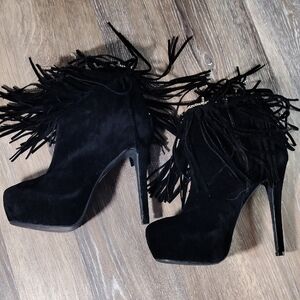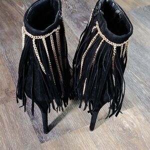 Scene Weaver Black and Gold Fringe Ankle Booties