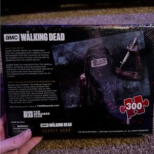 AMC The Walking Dead Supply Drop Collectible Box. Comes with everything shown from the box, a collective Judith Grimes Funko Pop, a king count sherif note book, and a 300 piece puzzle. All NWT!!