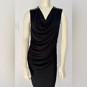 EUC Flattering Little Black Dress With Gold Shoulder Details Peter NyGard Sz 8
