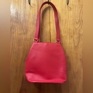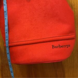 Chic Burberry shoulder bag in a striking red hue. Perfect for adding a bold touch to any outfit.Please carefully look at the pictures. They are part of the description. This is a vintage Burberrys red bucket bag. Slight wear throughout outside but nothing that noticeable for how vintage this piece is.Clean pristine condition on the inside.Please feel free to ask me any questions and thank you for looking at my closet.