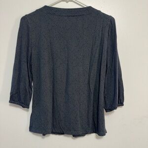 Chic charcoal blouse with a relaxed fit. Features a flattering neckline and three-quarter sleeves.