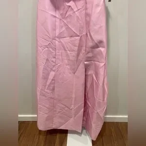 @blueberry38 it hasn’t been worn or altered ! I’m a size 6/8 and it was a tiny bit loose on me ! I don’t have any photos of it on as I haven’t worn it anywhere :) unsure the exact color but it’s definitely a really pretty pink !! it’s not bubblegum at all